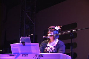 みやこさんはアキノさんの伴奏でボーカルを披露。