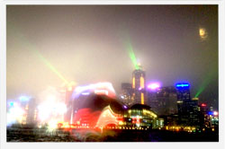 復活したモリカちゃんも一緒に、夜は船から光のショー。